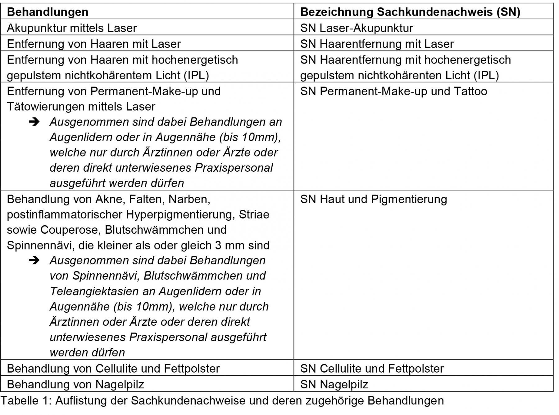 Ab 1. Juni 2024 dürfen die in der V-NISSG aufgeführten Behandlungen mit nichtionisierender Strahlung oder Schall nur noch von Personen durchgeführt werden, die einen entsprechenden Sachkundenachweis erworben haben.